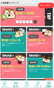少し下の人気定番コンテンツの中の「モッピーカジノ」をタップするとOK
